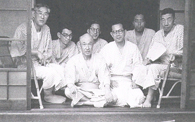 左から尾本、武藤、山本、永倉、高木、田中、神保各先生方(熱海寮にて)